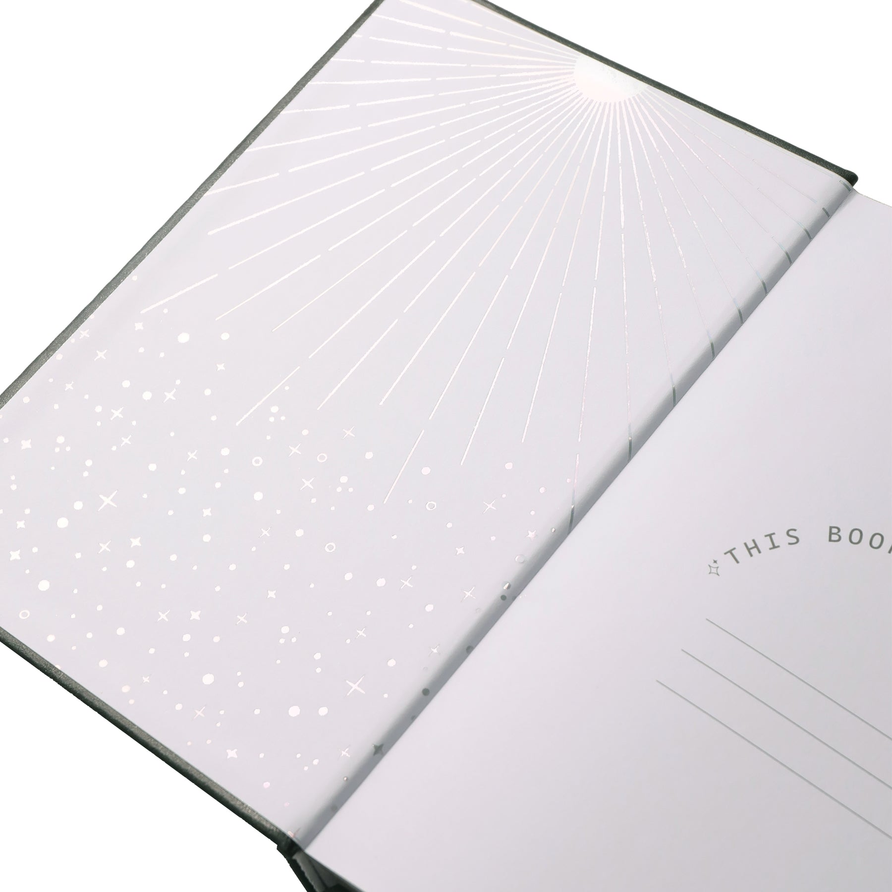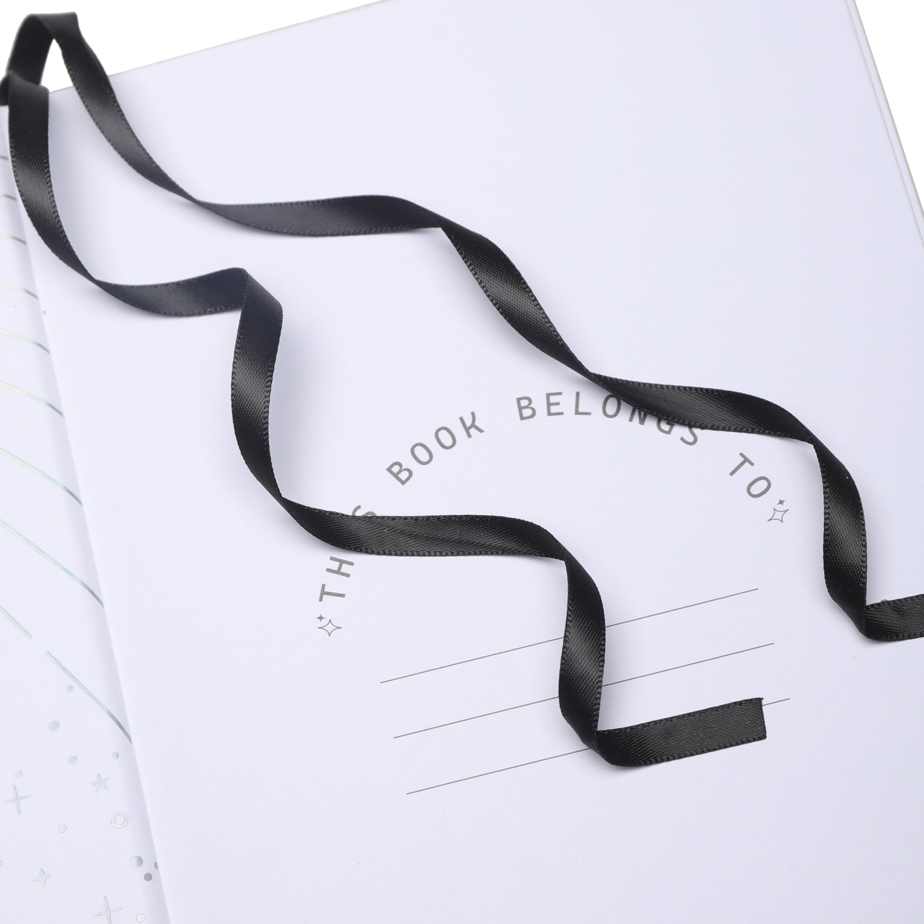 The cover features a mesmerizing celestial theme with a large butterfly, a glowing crescent moon, stars, and winding paths, presented in a stylish, mystical black palette with iridescent accents via stunning laser silver hot stamping. It comes with a matching spine decorated with a starry night sky and a moon - beneath dreamcatcher. Ideal for lovers of whimsical, celestial - inspired aesthetics.