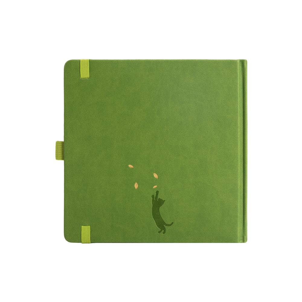 8x8 Square Sakura & Cat Dot Grid Notebook - Green