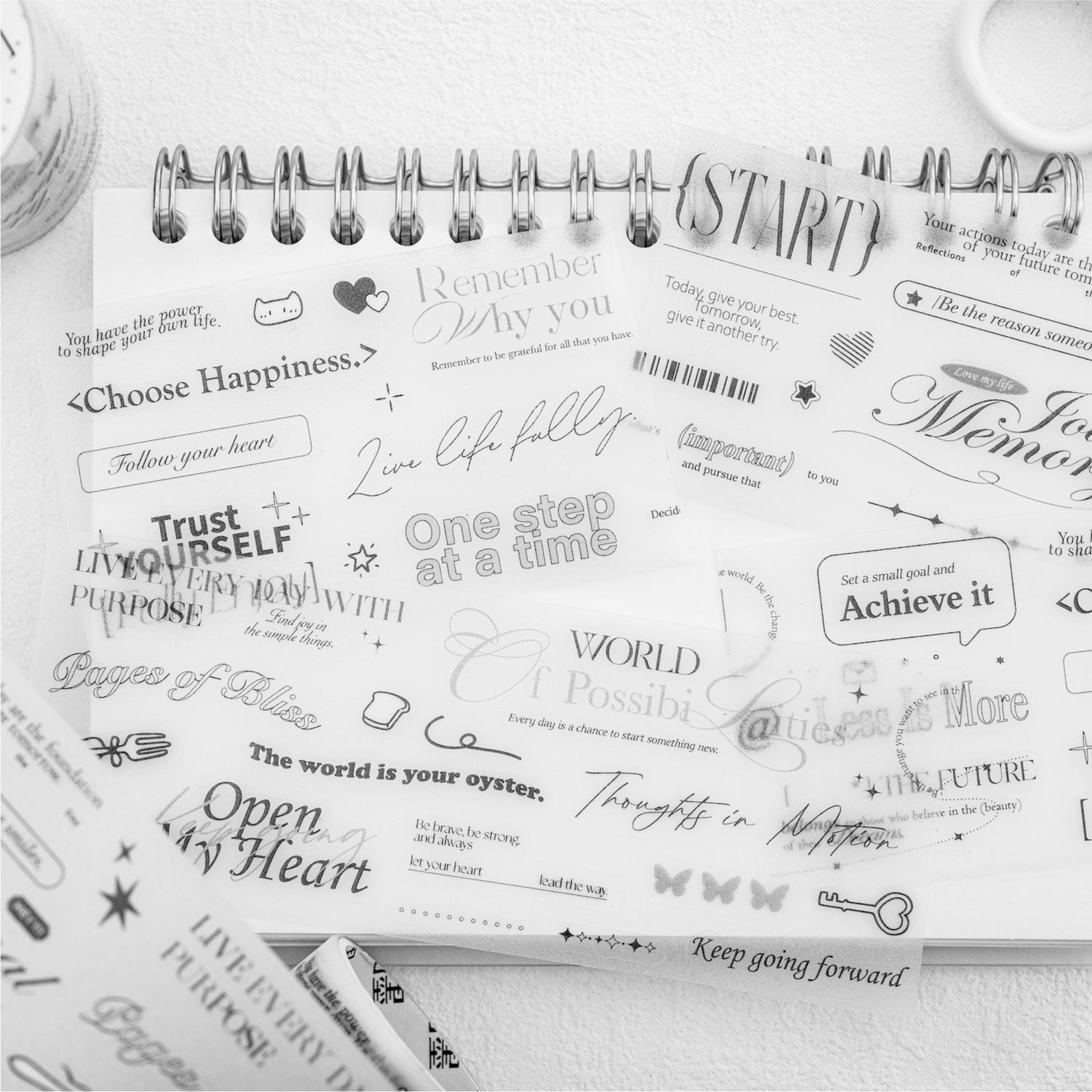Elevate your creative projects with this inspiring glitter PET tape collection. Featuring six distinct styles, each roll delivers 350mm of motivational phrases and uplifting sentences wrapped in shimmering glitter finish. The premium PET material combines durability with eye-catching sparkle, making it perfect for gift wrapping, scrapbooking, and everyday decoration. Let these empowering words add a touch of brilliance and positivity to everything you create.