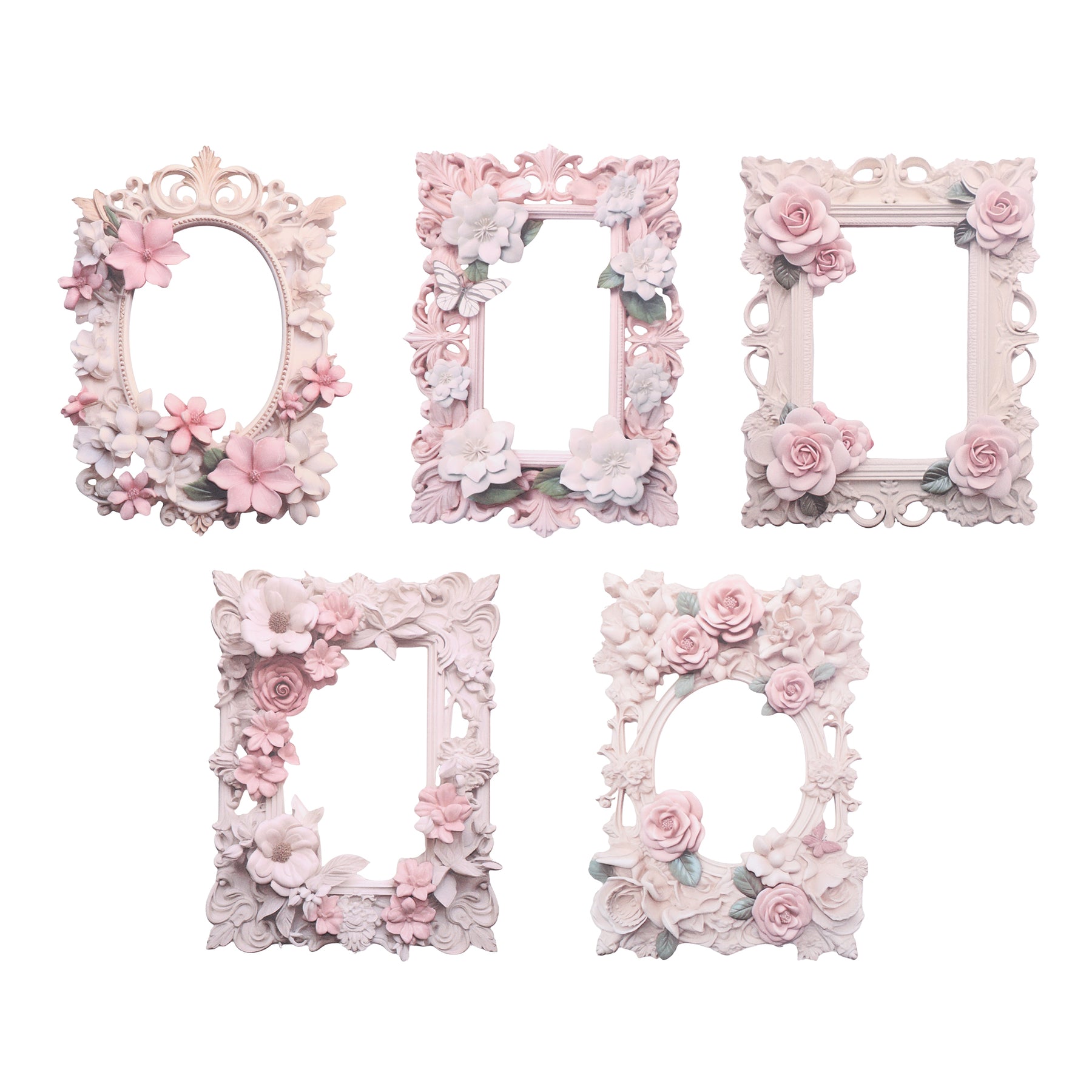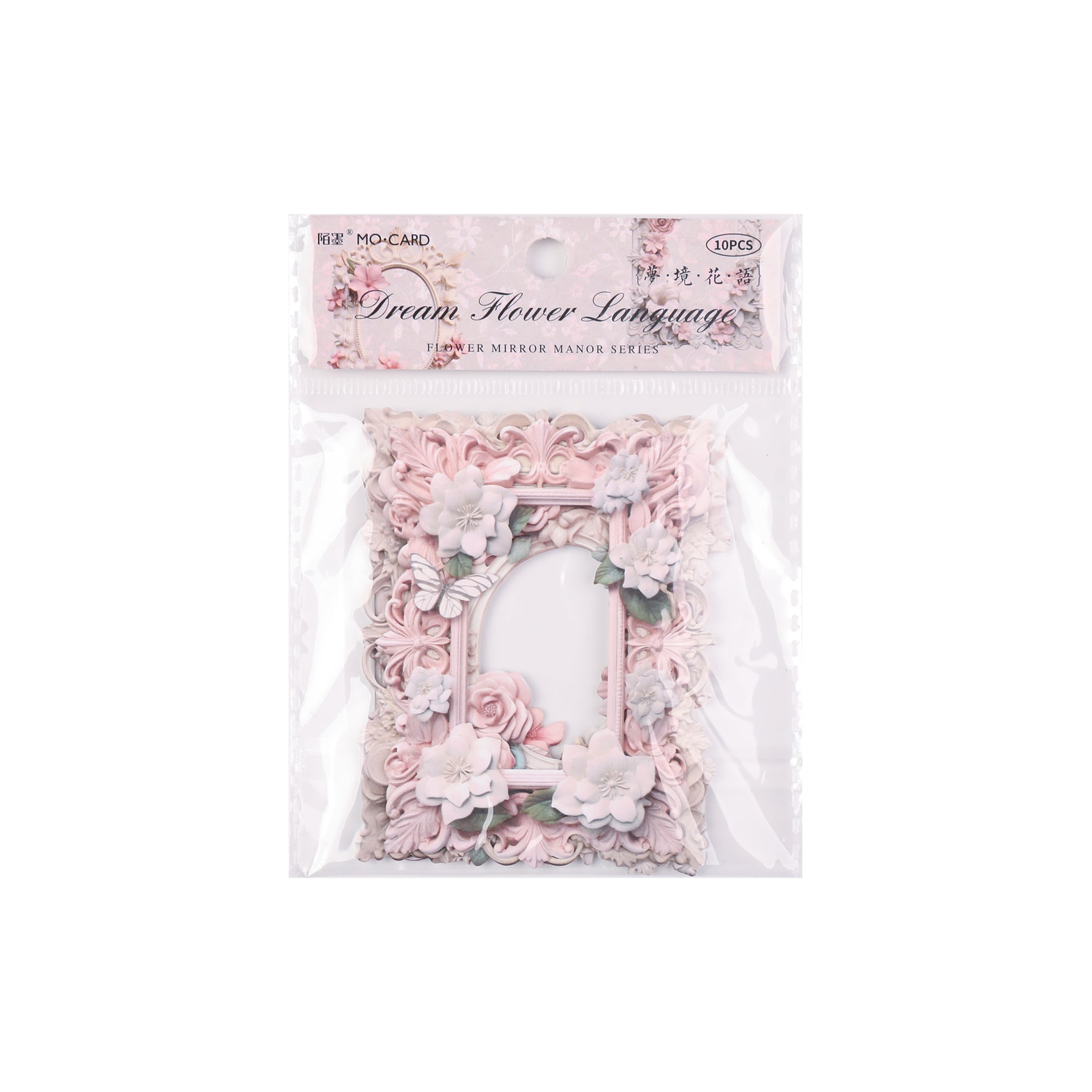 This set of Dream Flower Language scrapbook paper includes 10 sheets featuring five distinct vintage designs. Each design showcases intricate embossed and die-cut borders combined with elegant floral elements, with two sheets per pattern. Perfect for sophisticated scrapbooking and crafting projects that demand a classic, refined look.