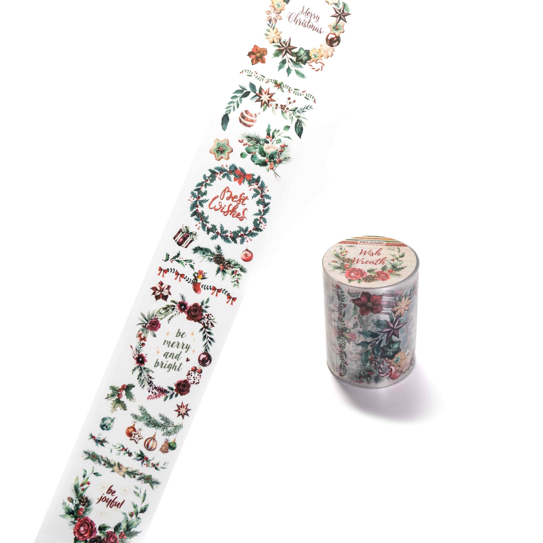 Christmas Wish Wreath PET Tape features a festive wreath design perfect for bullet journal layouts and planning pages. Made from durable PET material, this decorative tape offers a 350mm repeat pattern that creates seamless, professional-looking borders and accents.