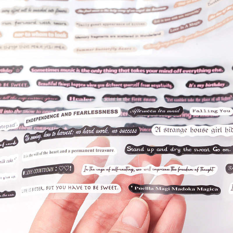 Transform your stationery projects with this six-roll motivational word quote tape collection. Each roll combines self-adhesive and PET materials with precision die-cut technology for flawless application. Ideal for decorating planners, journals, gift packages, and craft designs.
