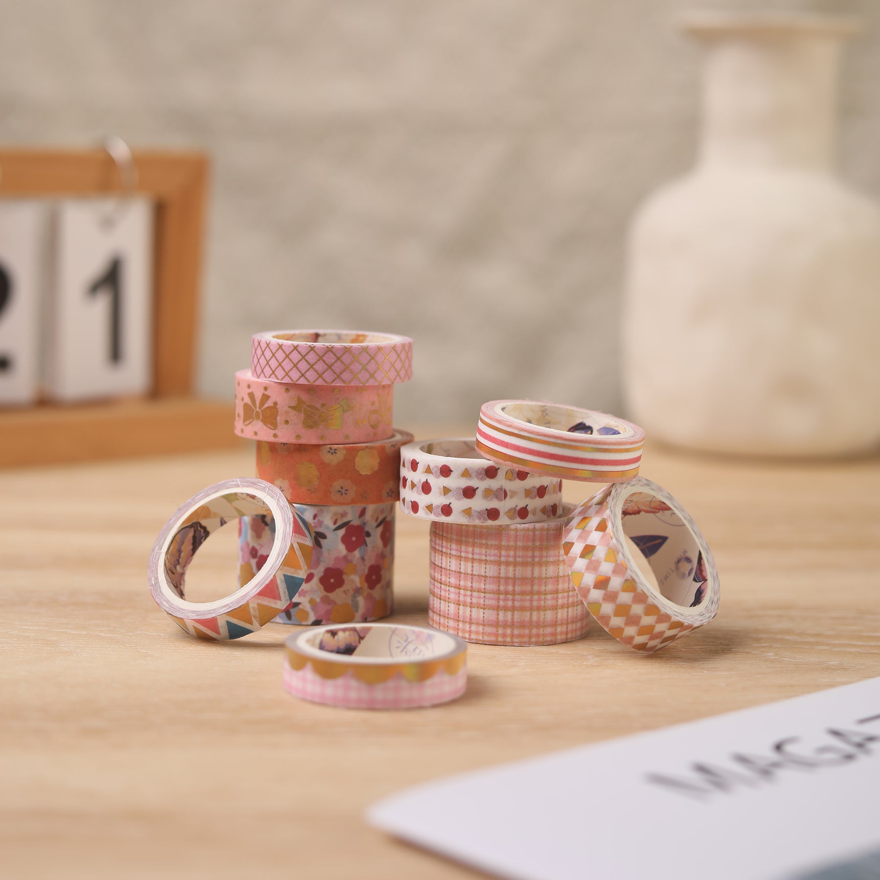 Add a touch of sweetness to your crafts with Sweet Moments Washi Tape. This set of 10 tapes features dreamy pastel hues, gold foil accents, and delicate designs like floral, geometric, and bows. High-quality and versatile, perfect for bullet journaling, scrapbooking, DIY projects, and gift wrapping.