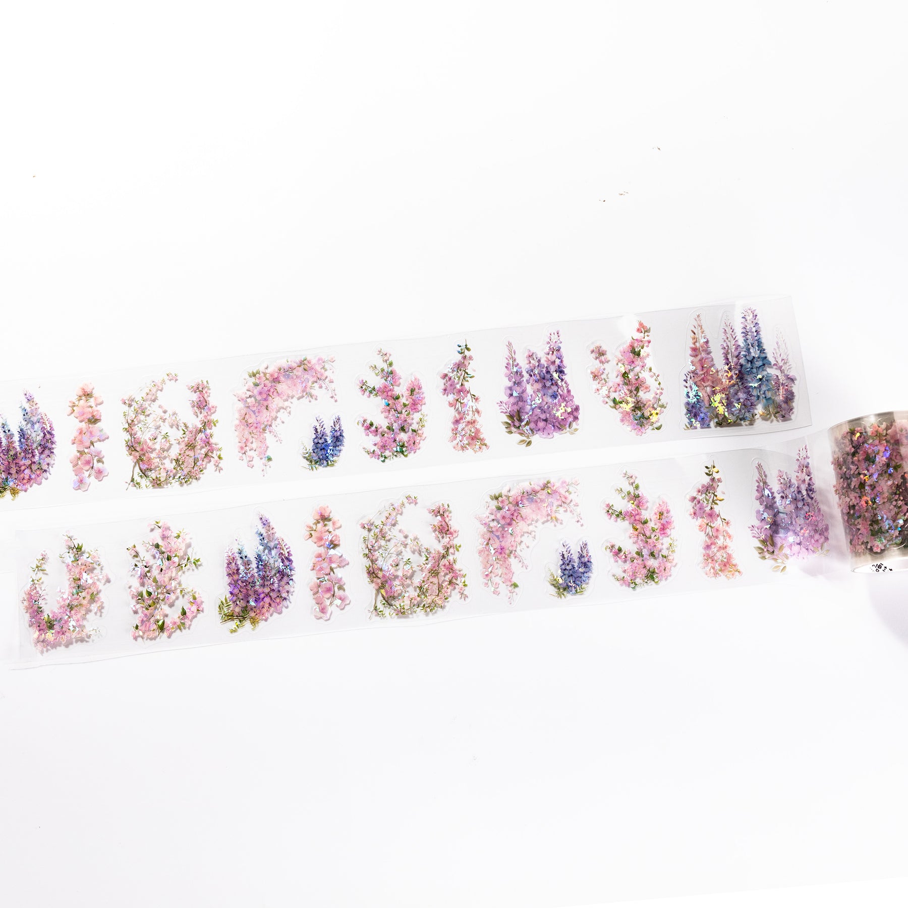 Botanical elements including blooms, branches, and foliage adorn this premium PET tape with a 380mm pattern repeat. Engineered from resilient PET material, it offers exceptional durability for packaging, craft projects, and decorative finishing. The sophisticated floral design elevates any application with natural-inspired aesthetics while maintaining consistent performance and reliability.